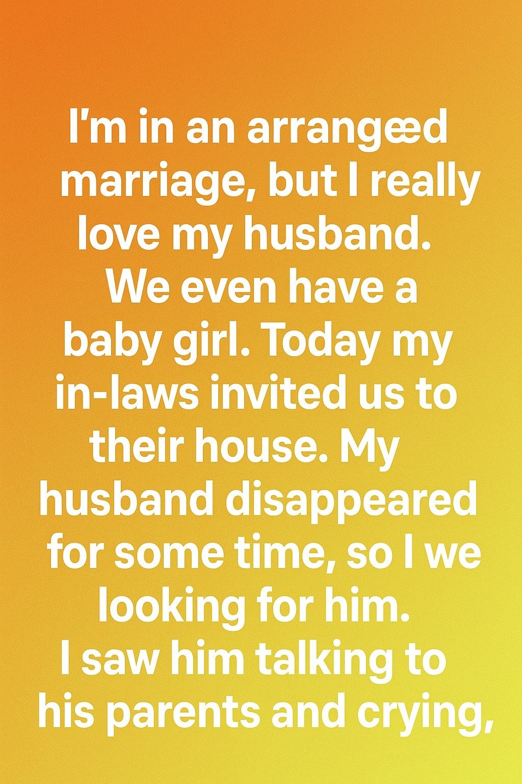 I’m in an arranged marriage, but I really love my husband. We even have a baby girl. Today my in-laws invited us to their house.