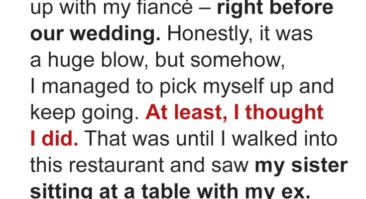 I decided to treat myself to lunch at a small Italian place I loved but had avoided since the breakup because it had been “our spot.” I was waiting for my table when I saw them through the window — Jessica and Richard, sitting in a corner booth, heads bent close together.
