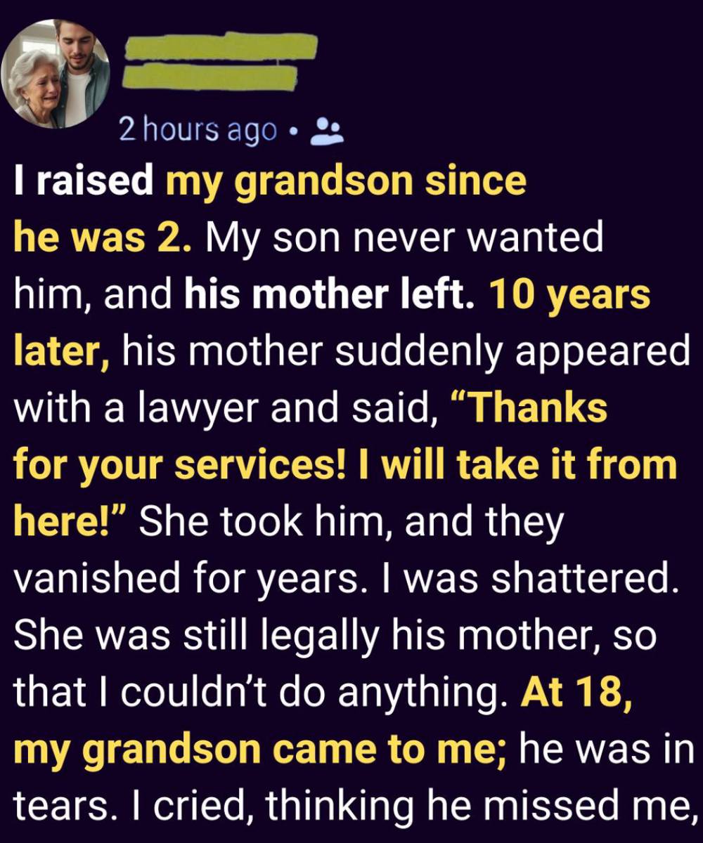 She Took My Grandson Away After I Raised Him — Years Later, He Returned Changed