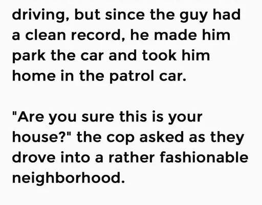 “Yeah?” the cop replied suspiciously. Beginning at this point to seriously doubt the man’s story.