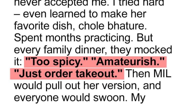 My MIL and Her Family Sabotaged Every Meal I Made – Until I Secretly Served Her Own Dish