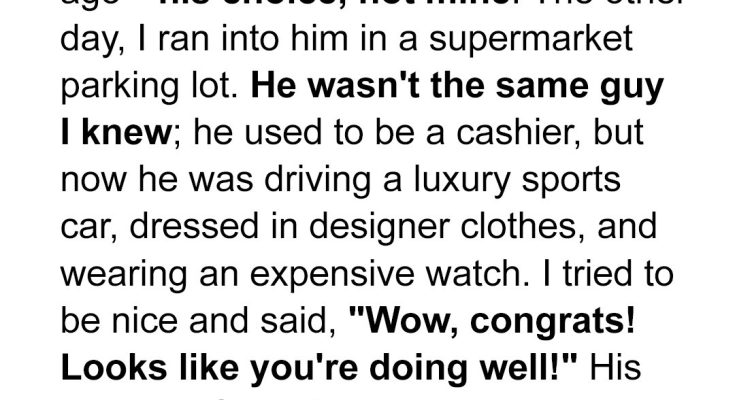 “No, it’s nothing like that,” I began and reached into my pocket for the $100 bill. “I’m asking because I just saw Michael, my ex, driving a sports car and wearing clothes worth more than our old rent. He threw this at me. I drew that smiley face on the stack of cash Grandpa offered me.”