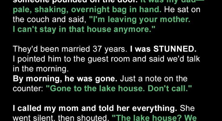 My heart sank. “Mom, he… he told me he’s divorcing you. And now he’s gone to the lake house.”