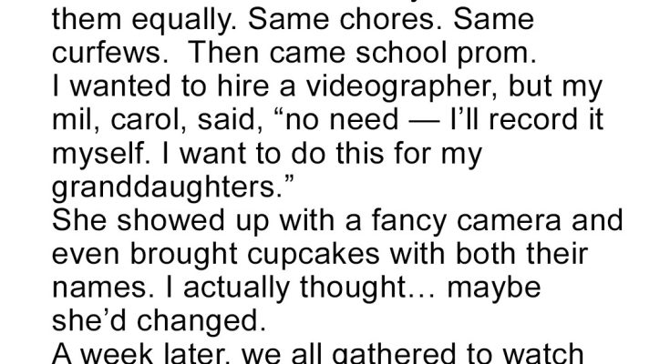 When my MIL insisted on filming our daughters’ prom night, I thought it was a sweet gesture — maybe she’d finally accepted both girls as family. But when we hit play on the video, her cruel favoritism was caught on tape… and what she said left the whole room stunned into silence.Emma and Lily grew up side by side in our house. Though not biological sisters, my husband and I ensured we always treated them fairly.