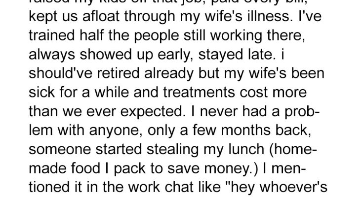“Share?” I stood up, anger finally overriding shock. “There’s a difference between sharing and stealing. My wife… she’s sick, Mr. Thompson. She can barely hold a spoon some days, but she still makes my lunch because she loves me. And someone was taking that.”