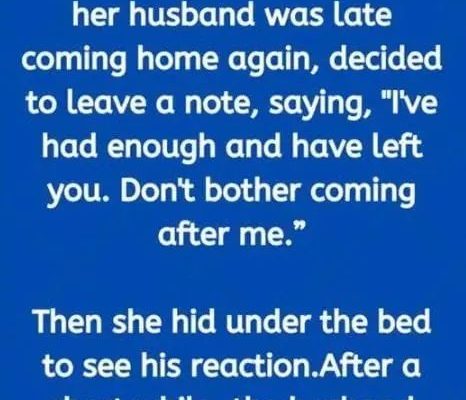 A woman, cranky because her husband was late coming home again, decided to leave a note, saying, “I’ve had enough and have left you. Don’t bother coming after me.”