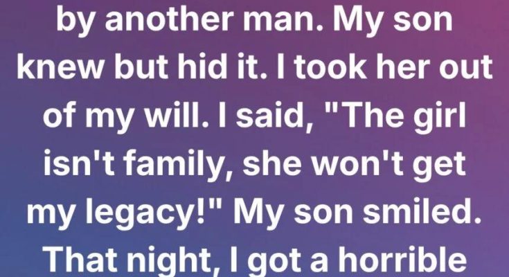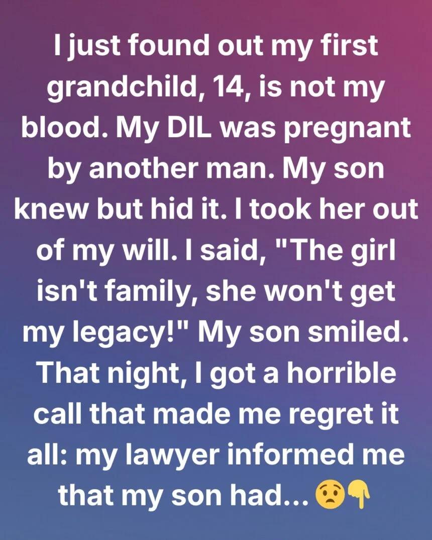 I told my son, “That girl isn’t family, she won’t get my legacy!” He just looked at me, gave a faint smile, and said nothing. But that night, I received a call that shook me to my core. My lawyer informed me that my son had requested that his two other children — my biological grandchildren, ages 12 and 8 — be taken out of my will as well.