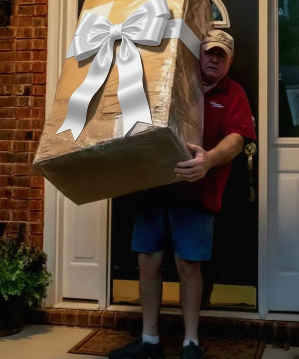The driver struggled with a massive box. “Careful,” he said. “This thing weighs a ton.”