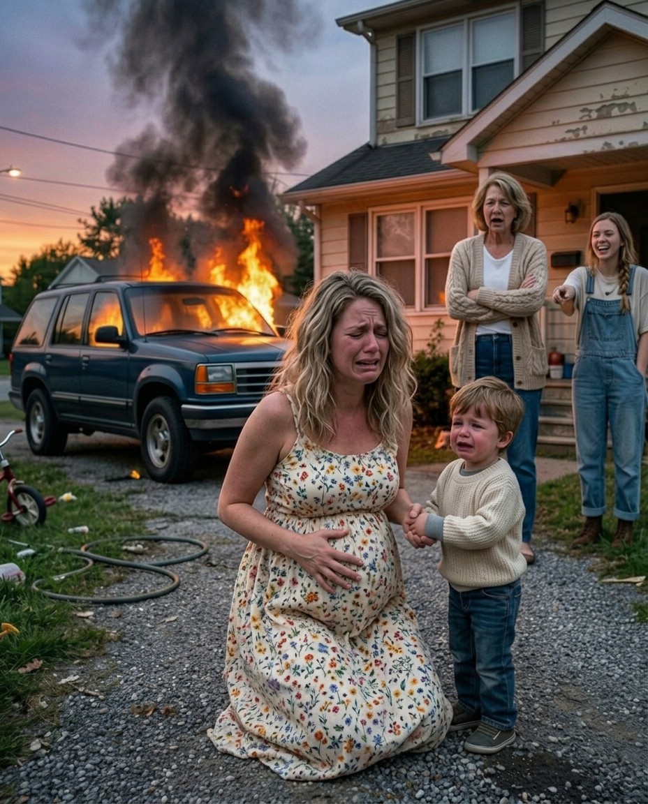 I stumbled to the front door and saw my sister standing in the driveway with a red gas can in her hand. My SUV was already wet down the side. For one frozen second I could not understand what I was seeing. Then Jessica struck a lighter.