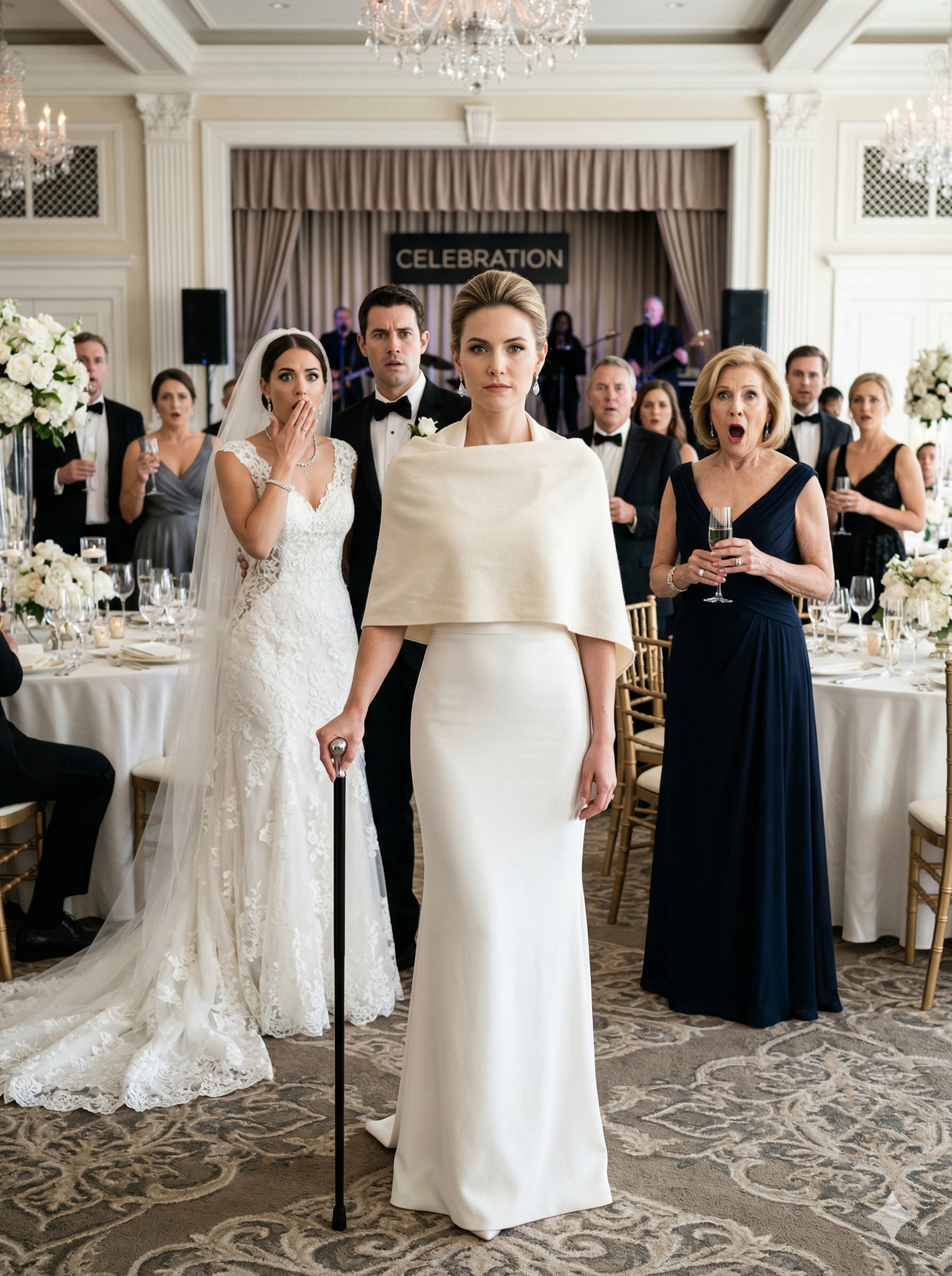 They shattered against the floor, the sound cutting through the music and conversation with a sharp clarity that turned every head in the room.