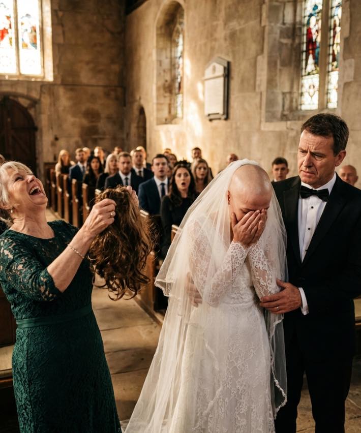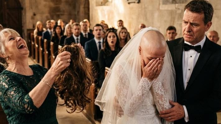 Laughter erupted in the hall; some turned away, others froze. I stood there, clutching my head, tears stinging my eyes. I felt ashamed, hurt, and resentful. The groom hugged me, trying to calm me down, but I could feel his hand shaking. And then something unexpected happened, after which my mother-in-law deeply regretted her actions. Continued in the first comment.