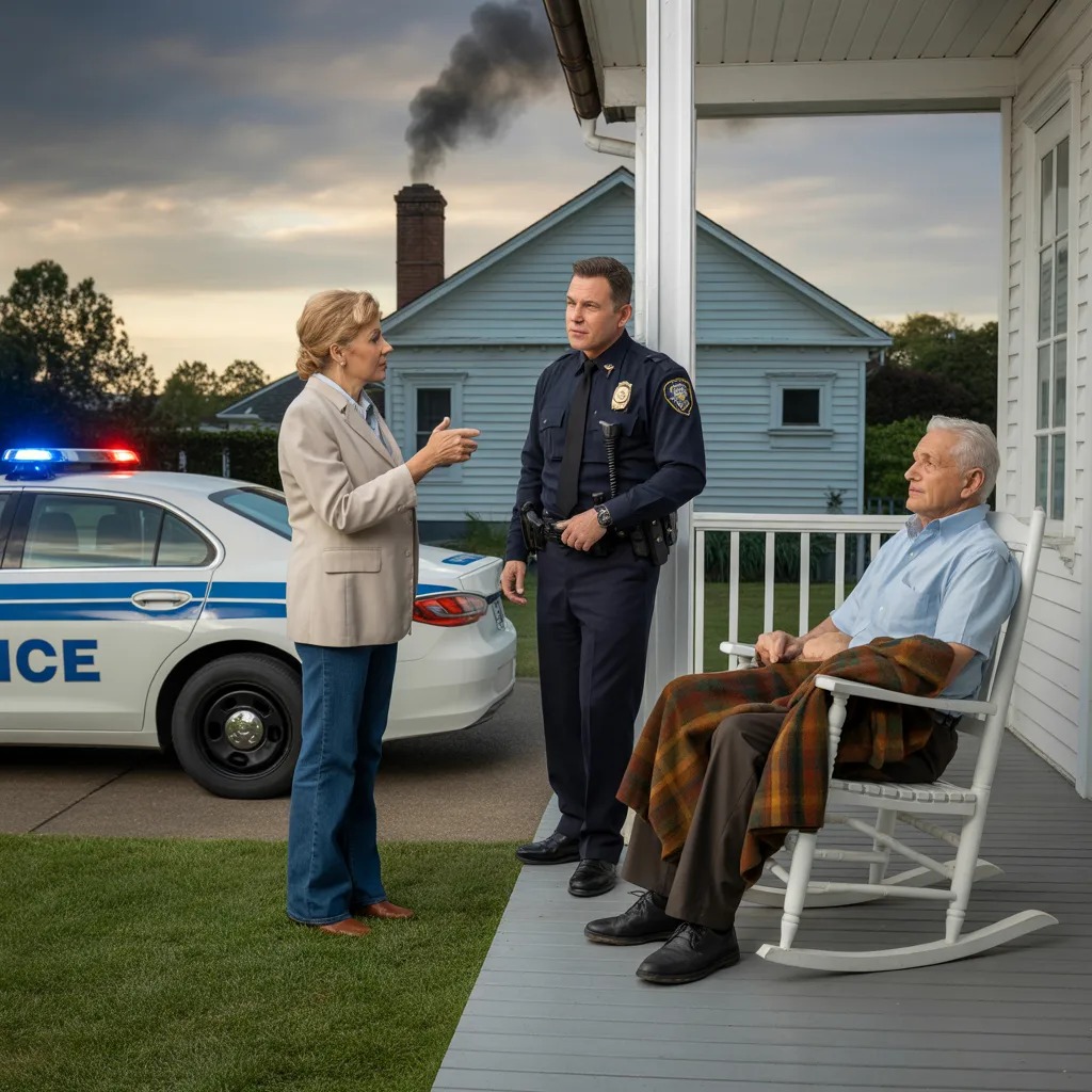 On the front porch, wrapped in a blanket and being attended to by paramedics, sat an elderly woman with silver hair and startlingly blue eyes. She looked to be in her late eighties, fragile but alert.