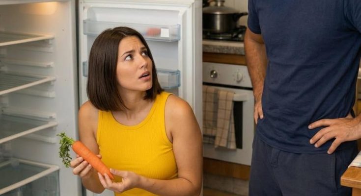 Ana was cleaning the refrigerator when, suddenly, her husband appeared in the kitchen doorway.