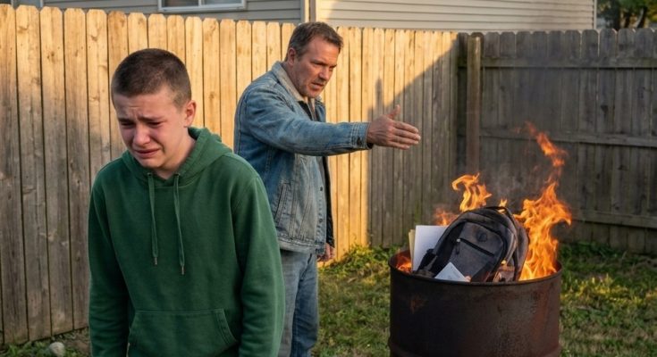 Not just a handful of shirts or a box of things from the garage. He dragged out my clothes, my notebooks, my work boots, my mother’s old coffee mug I had hidden in my closet, the framed photo from my high school graduation, even the secondhand laptop I had bought with money from roofing jobs that summer. He dumped it all into a metal barrel behind our house in Dayton, Ohio, and set it on fire like he was purifying the family name.