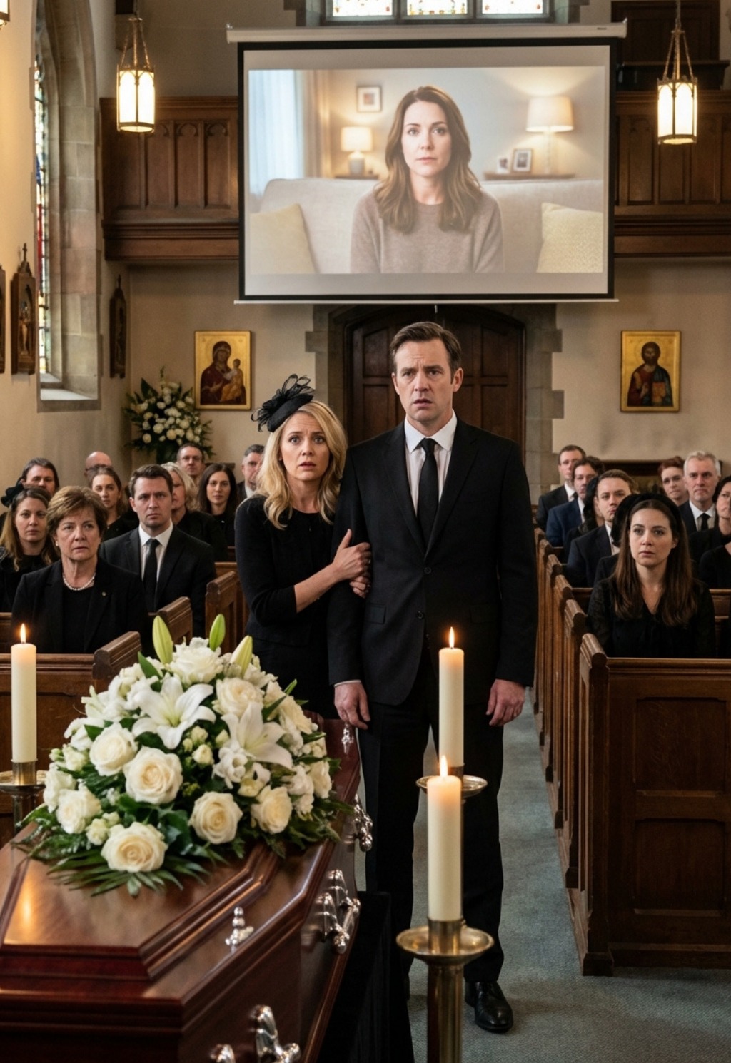 That confidence lasted until Reverend Miller finished the opening prayer and a screen descended beside the altar. Harrison straightened in his pew with mild annoyance as the projector lit up.