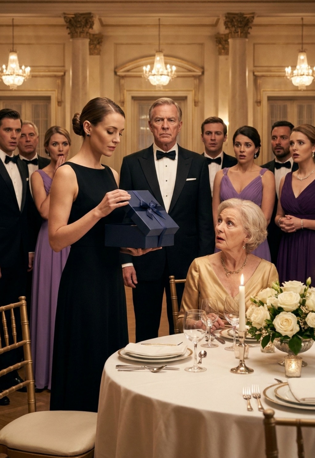 I walked past him toward the head table where my mother sat like a queen among her subjects, draped in diamonds that my father’s hard work had likely paid for. I placed the velvet box on the table directly in front of her and said, “Happy anniversary, Mother.”