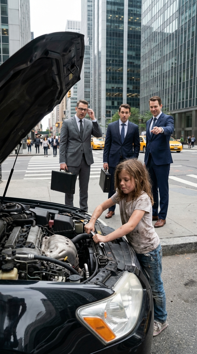 A Billionaire Stranded With His Luxury Car on a Crowded Street Mocked a Poor Girl With a $100 Million Joke — Until She Calmly Fixed the Car and Shook His Confidence, Changing the Way He Saw People Forever