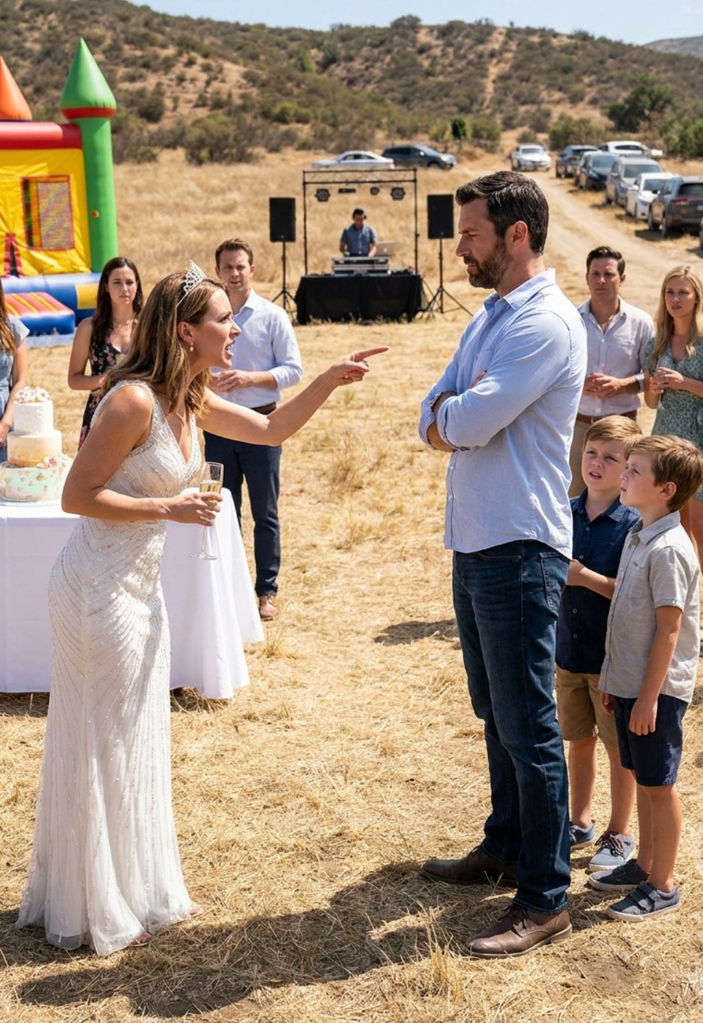 She was no longer the queen of the ranch, but just a furious woman in the middle of an absurd war built on a lie. It took twelve minutes for the cake to disappear and for the inflatable to deflate.