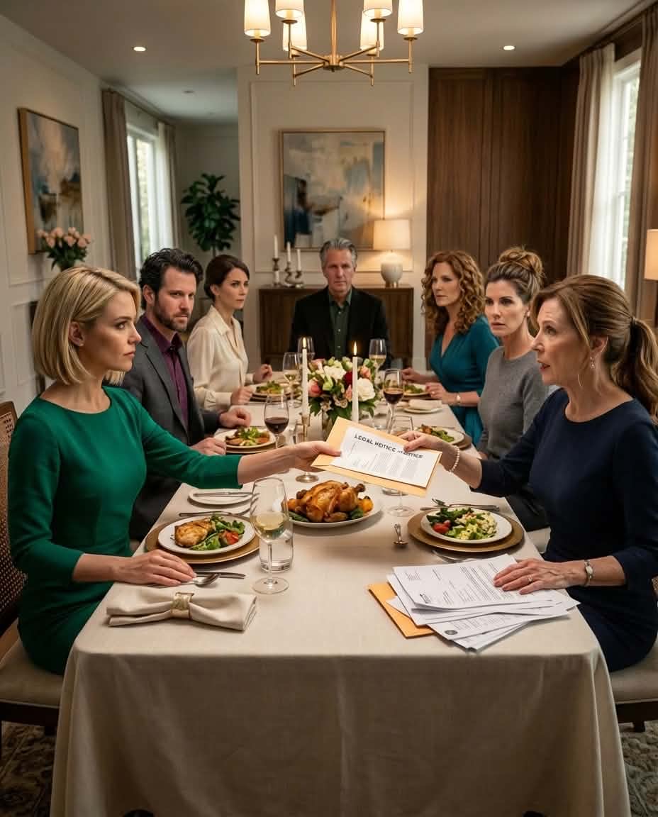 Dinner was held at her house in Plano, Texas—a large brick home where every gathering felt less like hospitality and more like a carefully staged confrontation disguised with polished silverware. The dining room glowed beneath an overly grand chandelier, the roast still steaming in the center, my husband Daniel silent beside me, and his mother, Patricia Vaughn, seated at the head of the table like authority itself—convinced that age turned cruelty into wisdom.