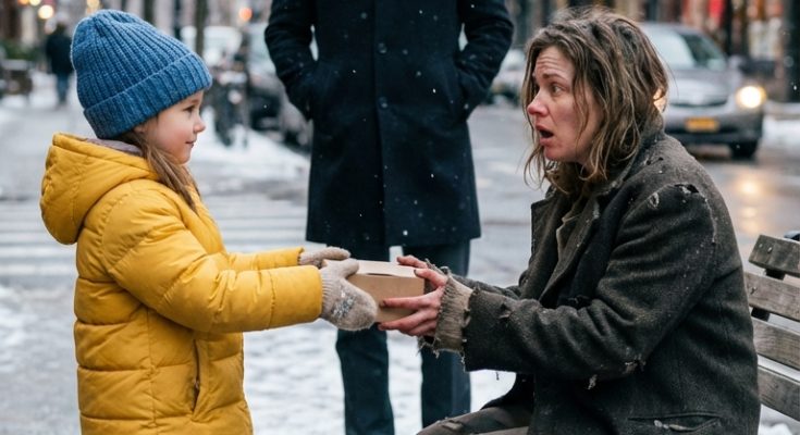 Harper tried to hide her feet from view, even though they were numb, red, and raw from the icy ground beneath her. The falling snow thickened and blurred the streetlights into soft glowing halos while she whispered to herself that tomorrow might be better, even though she had been repeating that hope for weeks without proof.