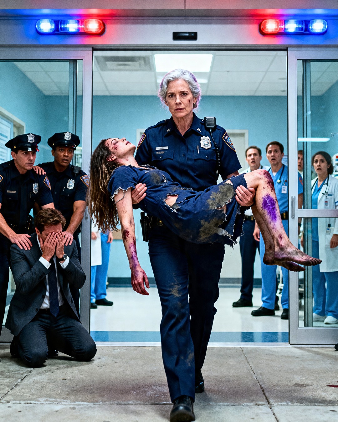 The emergency room was a blur of fluorescent light, antiseptic, and machine noise. I did not wait in line at triage. I walked straight to intake, flashed my detective’s shield, and let the nurses take one look at my badge and then at Rachel’s battered face.