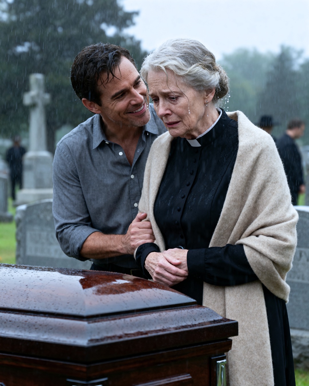 Dressed entirely in black, a thin shawl draped over my shoulders that did little to shield me from the cold or from my own trembling, I stood beside the coffin. My hands were clasped tightly together, as if holding myself in place.