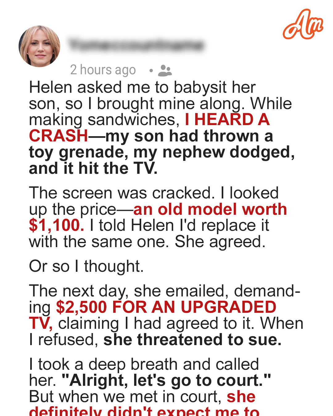 Ever had someone take advantage of your kindness? I was ready to pay my sister-in-law for the TV my kid accidentally broke. But she saw an opportunity and demanded a brand-new, upgraded version. When I refused, she threatened to sue. But karma had a little surprise waiting for her.