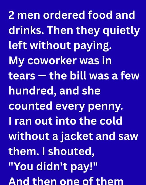 Two men ordered food and drinks. Then they quietly left without paying. My coworker was in tears the bill was a few hundred dollars, and she counted every penny, knowing she couldn’t afford to cover it herself.