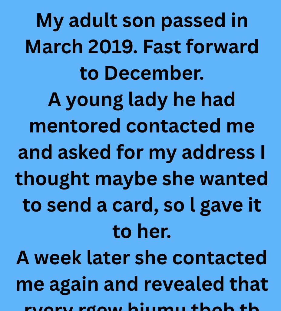 One day, I received a message from a young woman my son had once mentored. She kindly asked for my address. I assumed she wanted to send a card, perhaps a note of remembrance, so I shared it with her.