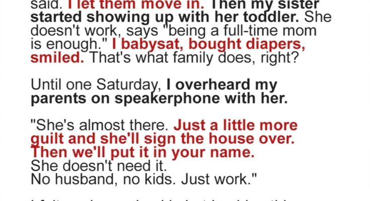 But soon, my home felt crowded and noisy, filled with comments about my “single lifestyle.” My sister Claire joined in with her child, often expecting me to babysit and provide. I managed, until one morning I overheard my parents’ real plan. They wanted me to sign over my house to Claire, believing I didn’t need it since I had no family of my own.