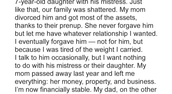Though I felt compassion for the child, I couldn’t ignore that my mother’s money symbolized her sacrifice, her strength, and her independence after betrayal. Using it that way felt like erasing her story. When I refused, my father’s words turned sharp.