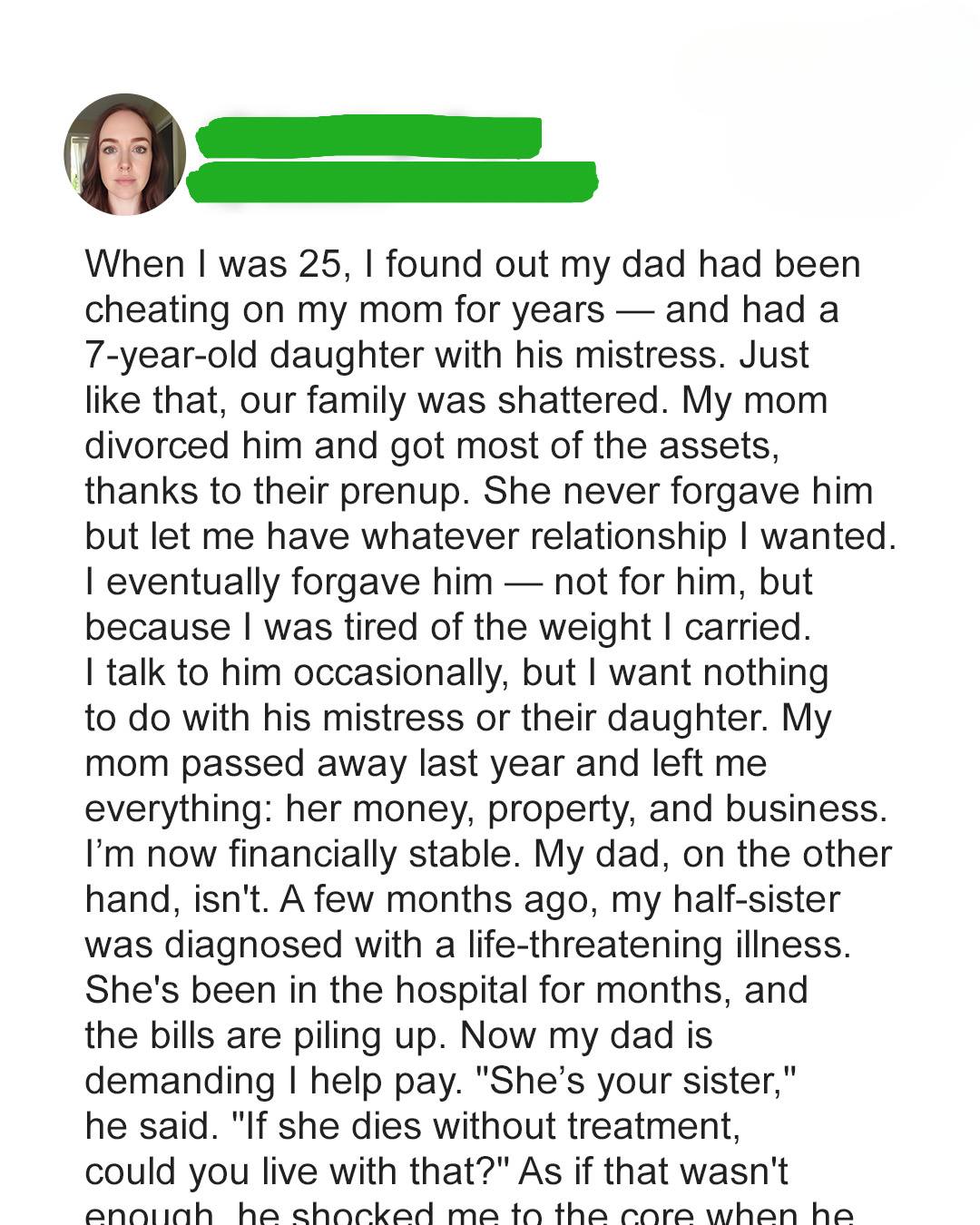 After My Mom’s Passing, Dad Demanded I Use Her Gift for His Other Child’s Needs