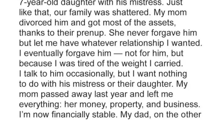 Though I felt compassion for the child, I couldn’t ignore that my mother’s money symbolized her sacrifice, her strength, and her independence after betrayal. Using it that way felt like erasing her story. When I refused, my father’s words turned sharp.