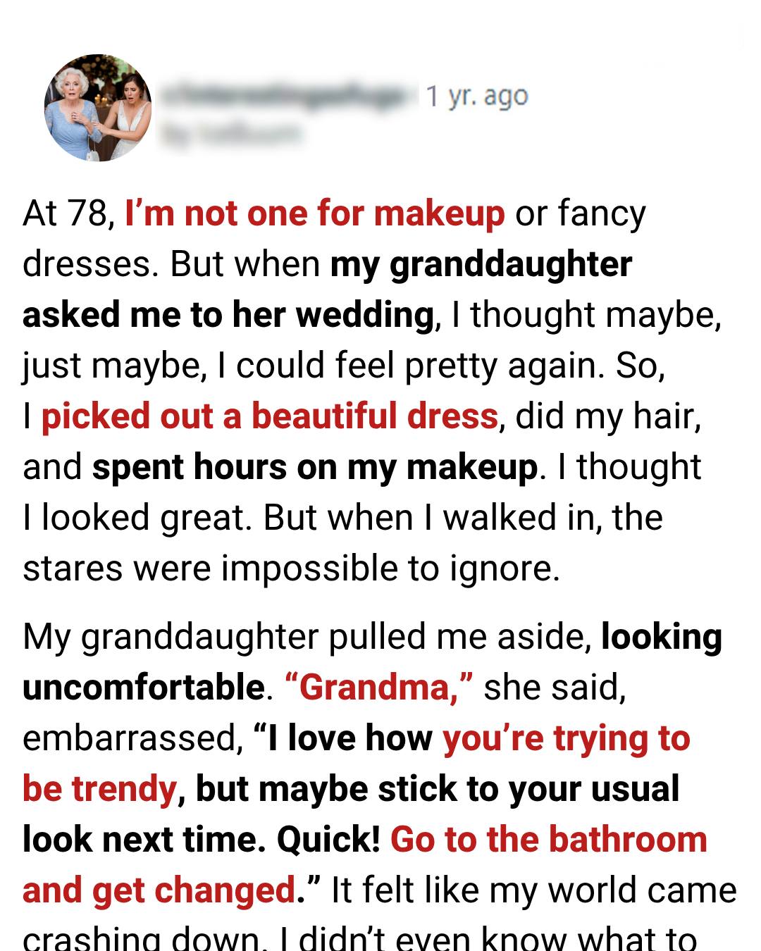 At 78, I’ve never been much for makeup or dressing up. My usual style is simple sweaters, slacks, and maybe a touch of lipstick if I’m feeling fancy. But when my granddaughter invited me to her wedding, I thought, why not try to feel pretty again?