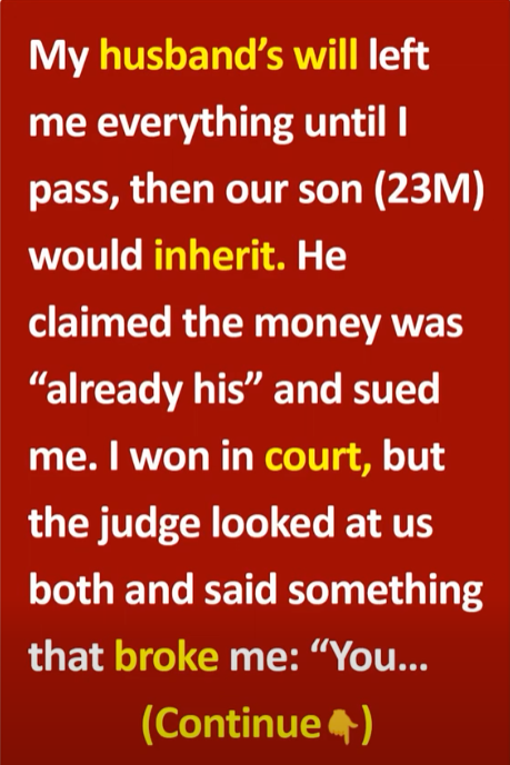 A widow inherited everything after her husband’s death, with their son meant to inherit later. But her 23-year-old son insisted the money was already his and sued her. In court, the judge confirmed the will was clear — the son only inherits after her passing. Then he added: “You haven’t just lost a case. You’re losing each other.” Both mother and son broke down in tears.