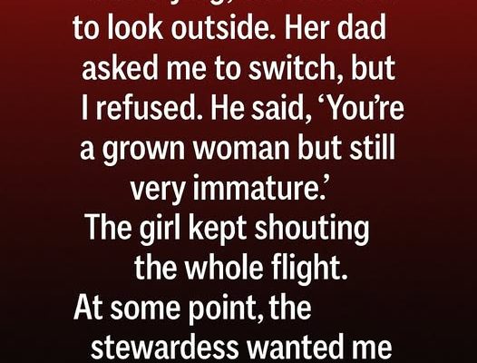 I smiled politely but explained that I had booked this seat ahead of time for a reason. He sighed, then muttered, “You’re a grown woman but still very immature.” His words stung a little, but I held my ground. Throughout the flight, the girl’s cries echoed softly, making the situation uncomfortable for everyone.
