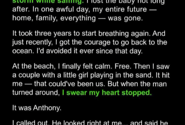 Three years ago, I lost my husband Anthony in a storm at sea. I buried him in my heart, even losing our unborn child in grief.