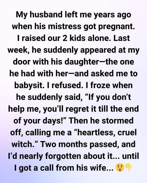 I’m 34, and my ex-husband, 36, walked out on me years ago when his mistress got pregnant. I’ve been raising our two kids on my own ever since. Last week, he suddenly appeared at my door with his daughter—the one he had with her—and asked me to babysit.