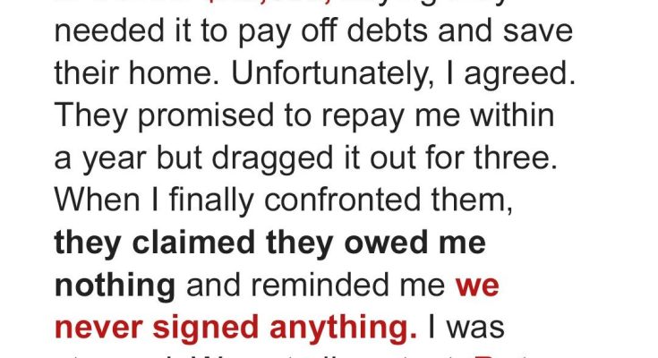 But weeks turned into months, and months into years and all I got in return was silence. Whenever I asked, the excuses grew thinner, while their social media posts showed vacations, new clothes, and dinners at fancy restaurants. I finally confronted them during Thanksgiving, hoping for honesty.