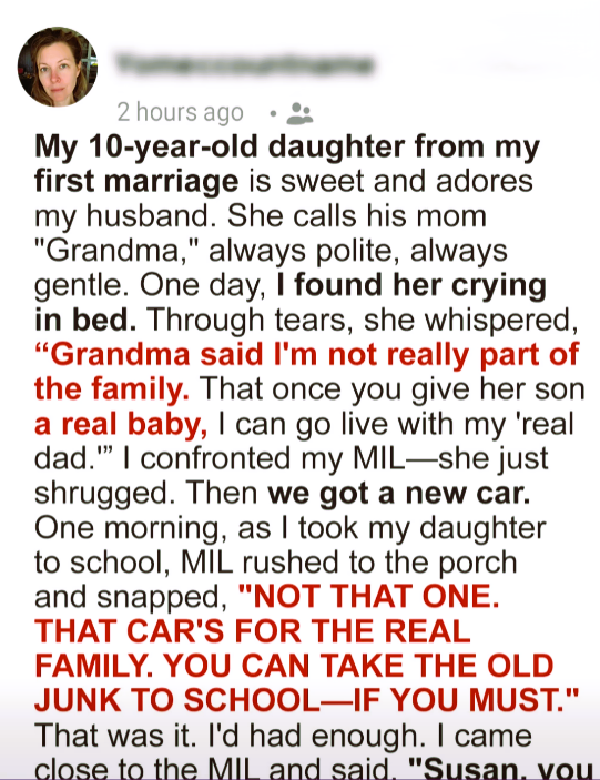 My MIL Told My 10-Year-Old Daughter She’s Not Part of the ‘Real Family,’ Then Banned Her from Our New Car – I Didn’t Let It Slide #3