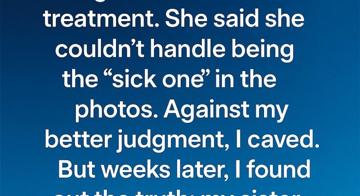She said she couldn’t handle being the “sick one” in the photos. Against my better judgment, I caved. But weeks later, I found out the truth: my sister wasn’t still in treatment — she was secretly planning her own wedding.