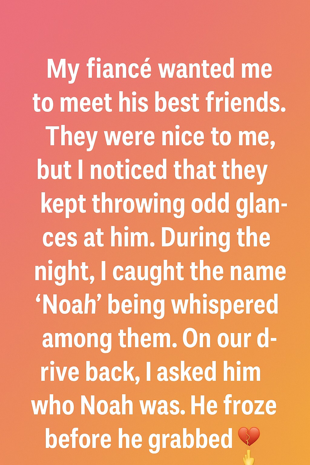 They were nice to me, but I noticed that they kept throwing odd glances at him. During the night, I caught the name “Noah” being whispered among them. On our drive back, I asked him who Noah was. He froze before he grabbed the steering wheel tighter, his knuckles turning white. The silence between us grew heavy until he finally sighed and said, “Noah was someone I used to know — someone I owe everything to.”