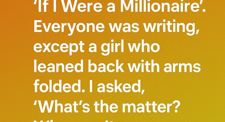 She looked at me with quiet confidence and said, “I’m just thinking… because I already feel rich, and I want to explain it the right way.” Curious, I encouraged her to continue. When I read her essay later, the opening line stopped me in my tracks: “I wouldn’t change much if I were a millionaire, because I already have everything that makes my heart full.”