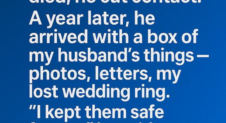 Then, one rainy afternoon, a year after his death, the doorbell rang. Standing there was my stepson, holding a cardboard box in his hands. It was as if time had stood still. His face, still so young yet hardened by grief, seemed unfamiliar. But it was his eyes—those same eyes I’d seen in my husband—that made my heart ache. He looked at me without speaking, then placed the box on the porch with a soft, “I kept them safe for you.”