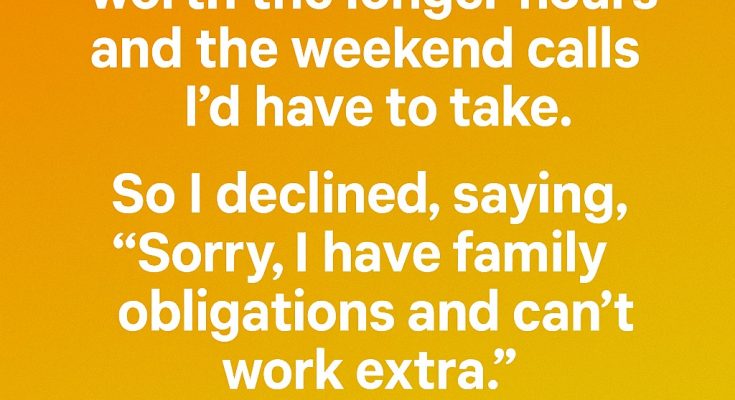 Yesterday I got promoted at work. The extra pay wasn’t worth the longer hours and the weekend calls I’d have to take. So I declined, saying, “Sorry, I have family obligations and can’t work extra.” This morning, everybody froze when we all received an email that said: “True leadership lies in choosing balance over burnout.” Beneath that sentence, my name stood alone. The office fell silent, not from anger, but from surprise and quiet respect.