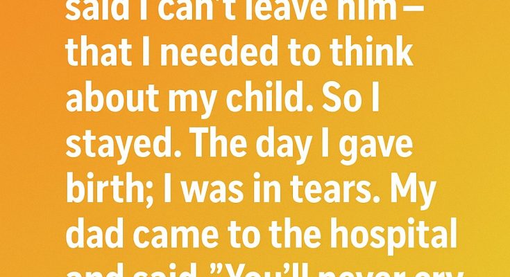 My dad looked into my eyes and said, “You don’t have to stay with someone who hurts you. You and your baby will always have me. I will be here to protect you both.” At that moment, my tears stopped. Not because the pain was gone, but because I finally felt safe and supported. With my dad’s help, I built a new life for me and my daughter — one filled with love, security, and hope. Looking back, I realize my father didn’t just give me a place to live or a way out — he gave me back my strength. And he was right: from that day forward, I never cried the same tears again.