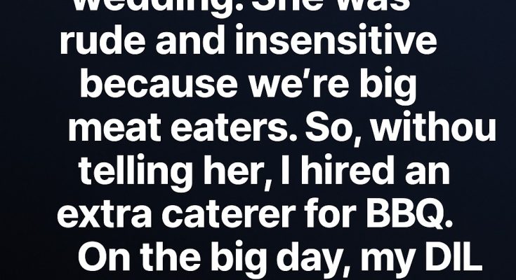 My son’s bride imposed a strictly vegan menu for the wedding. She was passionate about her lifestyle, and while I respected her choices, she didn’t leave room for compromise. My family, being lifelong barbecue lovers, felt left out. It wasn’t about the food itself—it was about the feeling that our traditions didn’t matter. Without telling anyone, I quietly hired a small caterer to set up a separate barbecue station outside the main hall.