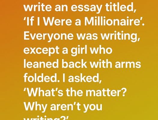 She looked at me with quiet confidence and said, “I’m just thinking… because I already feel rich, and I want to explain it the right way.” Curious, I encouraged her to continue. When I read her essay later, the opening line stopped me in my tracks: “I wouldn’t change much if I were a millionaire, because I already have everything that makes my heart full.”