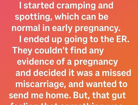 A few weeks later, I began having cramps and light spotting — which I’d heard could be normal in early pregnancy. Still, I couldn’t shake the feeling that something wasn’t right. I went to the ER, but after several tests, they said they couldn’t find signs of a pregnancy and suggested it might have ended early.