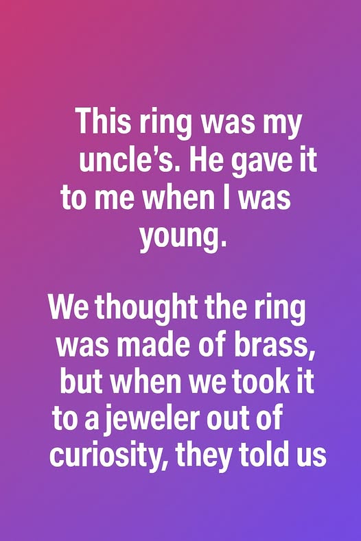 “You know this isn’t brass, right?” he said gently. He explained that the ring was actually made of solid gold, crafted by hand, and likely over a hundred years old. My uncle had never mentioned it, and I realized he must have known its true worth all along.